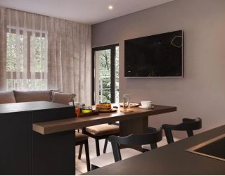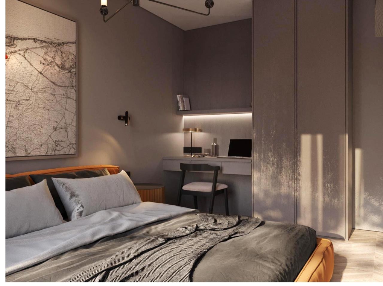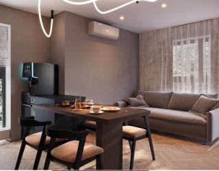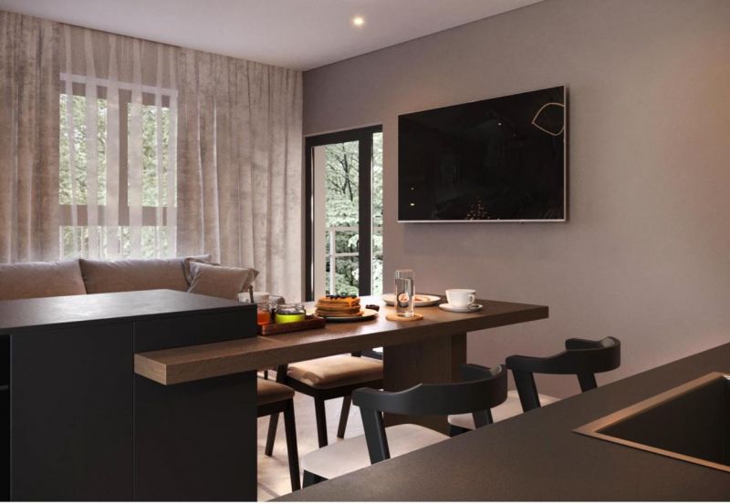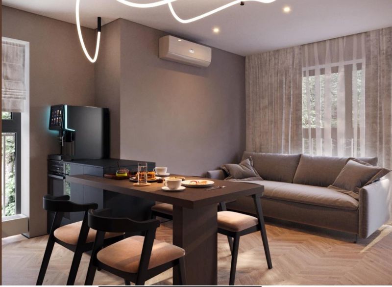 с современным интерьером. Среди удобств – кухня с электроплитой, духовым шкафом, электрочайником, микроволновой печью, стиральной машиной и холодильником, кондиционер, телевизор-ЖК
