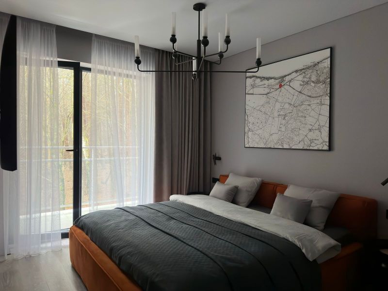 Апартаменты расположились в шестиэтажном современном доме на Кленовой улице. В распоряжении гостей уютный двухместный номер